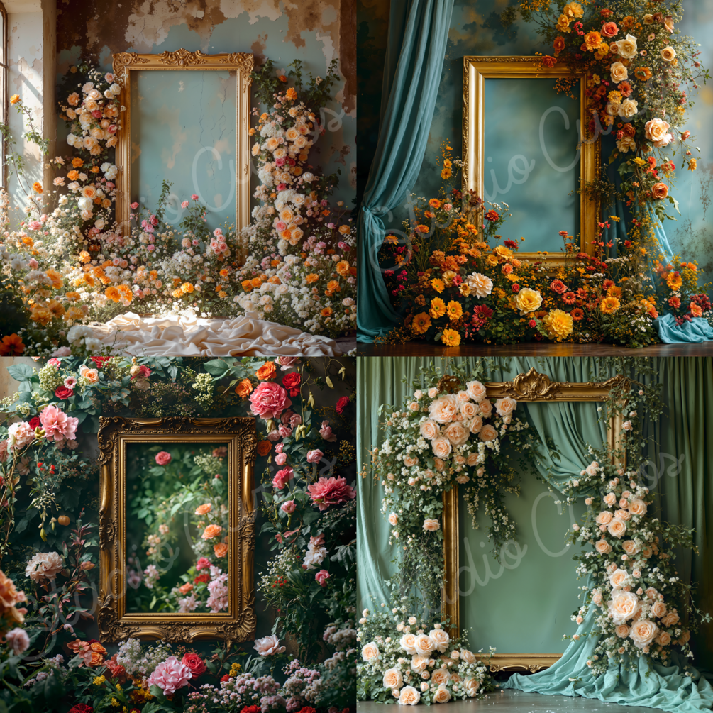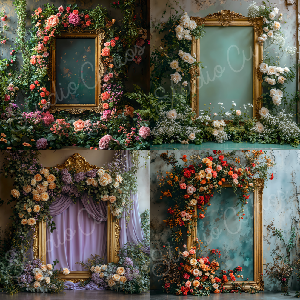 Step into a timeless dream with our 15 Rustic Floral Frame Backdrops—an opulent digital collection of ornate picture frames adorned with flourishing blooms, aged textures, and romantic drapery. Each scene evokes the charm of a vintage parlor or secret garden, perfect for editorial portraits, fine art photography, or fantasy composites.